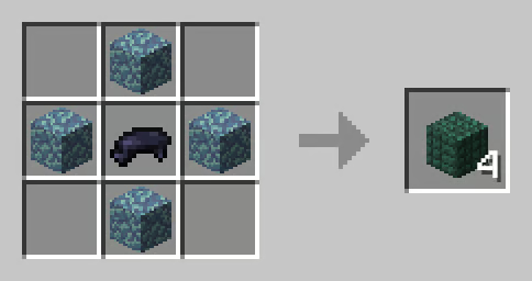 Dark Prismarine Blocks now only require 4 Prismarine blocks and 1 Black Dye as follows: