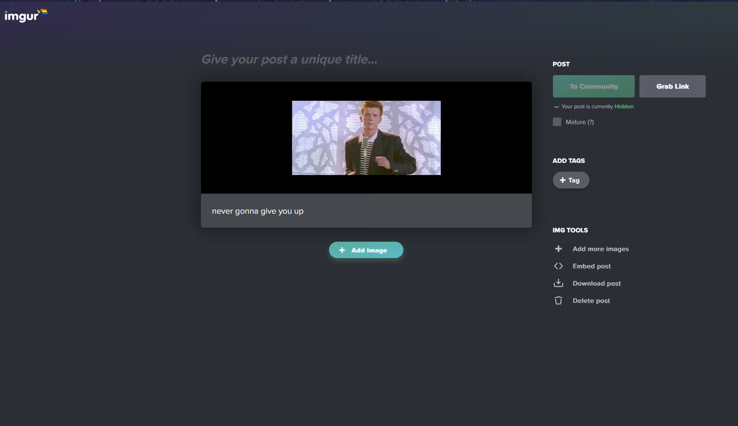 Next, upload your chosen image to imgur, you should receive a page that looks like the following:
